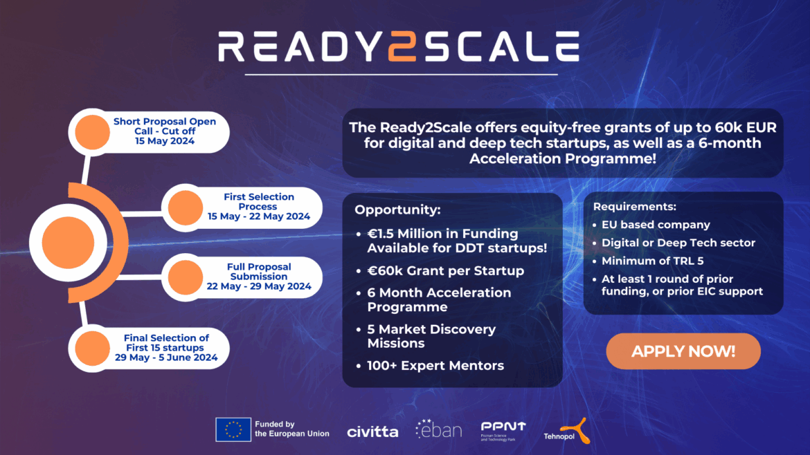 The Ready2Scale Project has 1.5 million Euro of Equity-Free Grant Funding for Startups!